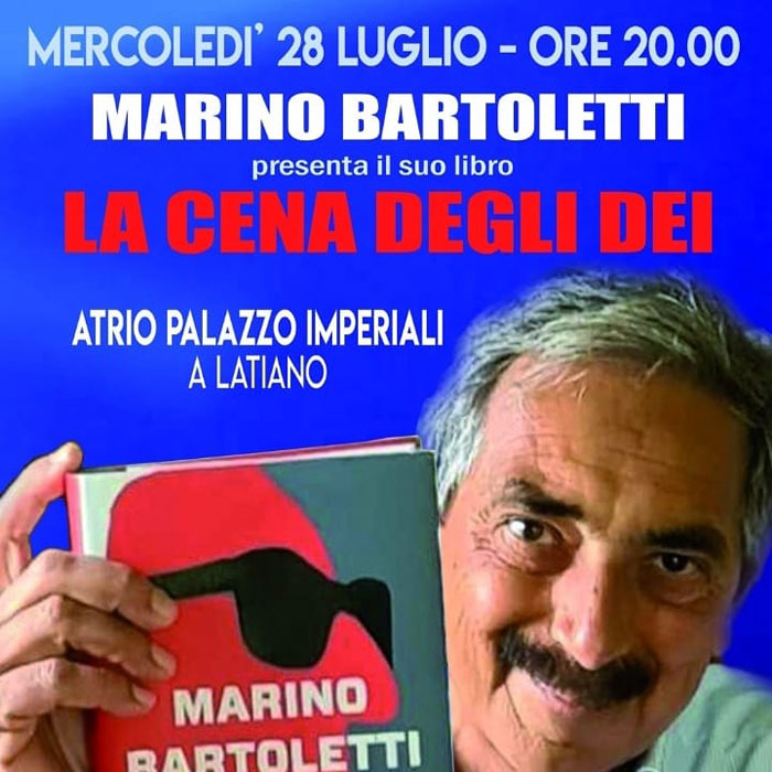 Il prossimo appuntamento sarà infatti caratterizzato dalla presentazione del libro “La Cena degli Dei” (Editore Gallucci) di Marino Bartoletti, in programma mercoledì 28 luglio 2021 alle ore 20,00 presso l’Atrio di Palazzo Imperiali, a Latiano alla presenza dell’autore dell’opera con in quale dialogherà Raffaele Romano. L’evento, fortemente voluto dal Sindaco Cosimo Maiorano che ha consesso il patrocinio dell’Amministrazione Comunale è organizzato in collaborazione con De Vivo Home Design e Unibed. Nel corso della presentazione sarà disponibile il libro; seguirà firma copie.