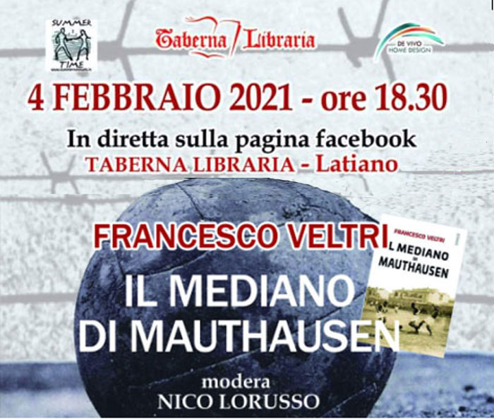Consapevole del proprio ruolo di presidio culturale e di realtà impegnata nel territorio, la Taberna Libraria di Latiano, in occasione della settimana della “Giornata della Memoria” e nel pieno rispetto delle restrizioni legate all’Emergenza Sanitaria, ha organizzato per giovedì 4 febbraio 2021 in diretta sulla propria pagina facebook la presentazione del libro “Il mediano di Mauthausen” (Edizioni Darkos) di Francesco Veltri.