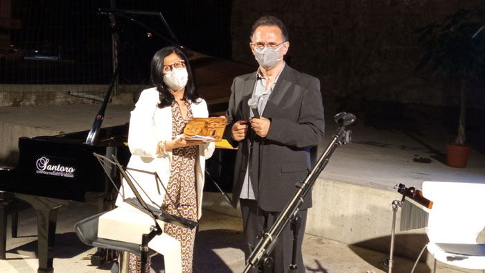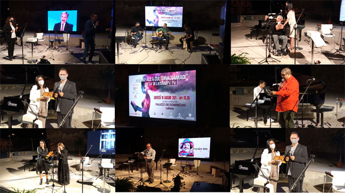 Nel corso dell’evento-spettacolo, svoltosi nello spazio antistante il Palazzo dei Domenicani di Latiano, le emozioni si sono susseguite con la proclamazione di ben due assegnatari del Premio alla Cultura Samadi – Sezione Nazionale, ambito che dal 2014 ha integrato ed arricchito quello a livello cittadino con il conferimento “a personaggi della nostra nazione che diffondono cultura in Italia”. Nella edizione dell’anno 2020, interessato come noto dalla Pandemia, ad aggiudicarselo era stato Lello Marangio, scrittore e umorista napoletano, autore di testi comici per teatro, cinema, cabaret e televisione. La vice sindaco di Francavilla Fontana, Maria Passaro ha provveduto, per l’occasione, alla lettura della motivazione e alla consegna del Premio a Marangio, presente e riconoscente, per un momento che ha potuto vivere dopo oltre un anno, dato che dell’assegnazione era già stato informato. Per l’Edizione 2021, il Premio alla Cultura Samadi – Sezione Nazionale, è andato a Marino Bartoletti noto giornalista televisivo, autore e conduttore TV e autore del libro “La Cena degli Dei”, al quale, poiché impossibilitato ad essere presente, la proclamazione è stata letta in collegamento telefonico. Il professionista dell’informazione, scusandosi per l’assenza, ha promesso ai presenti di riabbracciare tutti il prossimo 28 luglio quando sarà a Latiano proprio per presentare la sua opera letteraria. Applausi ed emozioni dal vivo insomma dopo mesi di restrizioni, il Premio alla Cultura Samadi è stata una occasione per sancire un importante segnale di ripartenza.