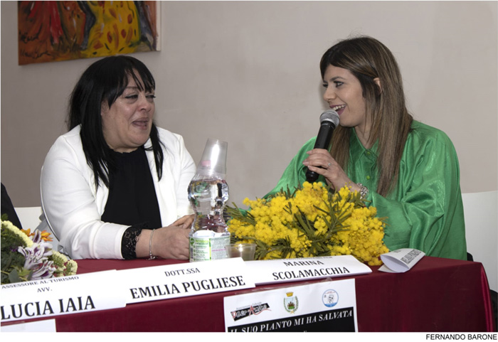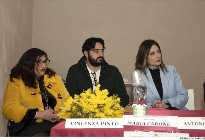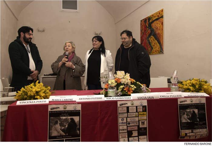 La proiezione del Docufilm è stata preceduta da una tavola rotonda sulla tematica della violenza sulle donne, condotta dal giornalista brindisino Nico Lorusso e alla quale hanno partecipato il Sindaco di Oria Maria Carone, l’Assessore alla Cultura e Turismo del Comune di Oria Lucia Iaia, le psicologhe Vincenza Pinto e Melania Pungente, la pedagogista Emilia Pugliese e la donna protagonista dell’opera di Patisso, la tarantina Marina Scolamacchia. Il Docufilm, girato sotto forma di video intervista con una breve ricostruzione in immagini delle fasi salienti della storia realmente accaduta è raccontata proprio da Marina, che dopo 11 anni di soprusi e maltrattamenti subiti dal proprio uomo, proprio quando stava per toccare il buio più profondo, è stata risvegliata da un pianto che le ha dato la forza di reagire e salvare sé stessa e i figli.